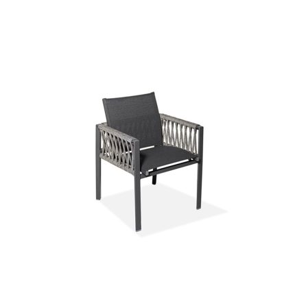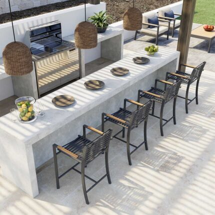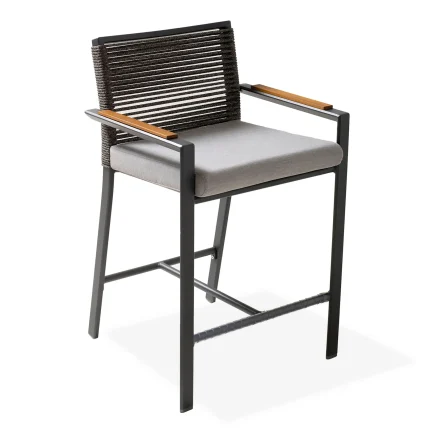 Stool crafted from environmentally friendly materials. It features an aluminum frame, sunbrella sling fabric, and ropes made from synthetic polypropylene and acrylic fibers. Dimensions W: 22in | 57cm L: 23in | 60cm H: 44in | 112cm H: 41in | 104cm SH: 29,5in | 75cm SH: 25,5in | 65cm