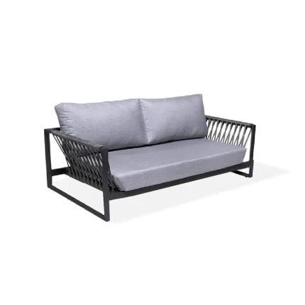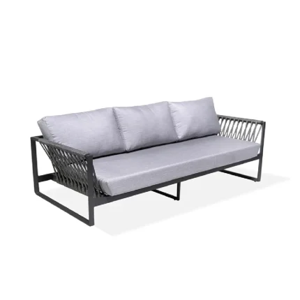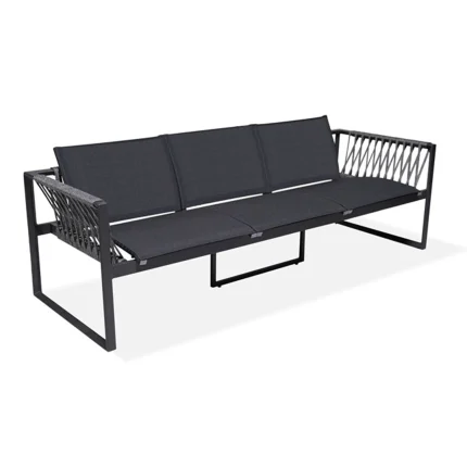 Triple sling sofa with an aluminum frame, Sunbrella sling fabric, and ropes crafted from synthetic polypropylene and acrylic fibers. Dimensions W: 85in | 214cm L: 31in |78cm H: 29in | 74cm